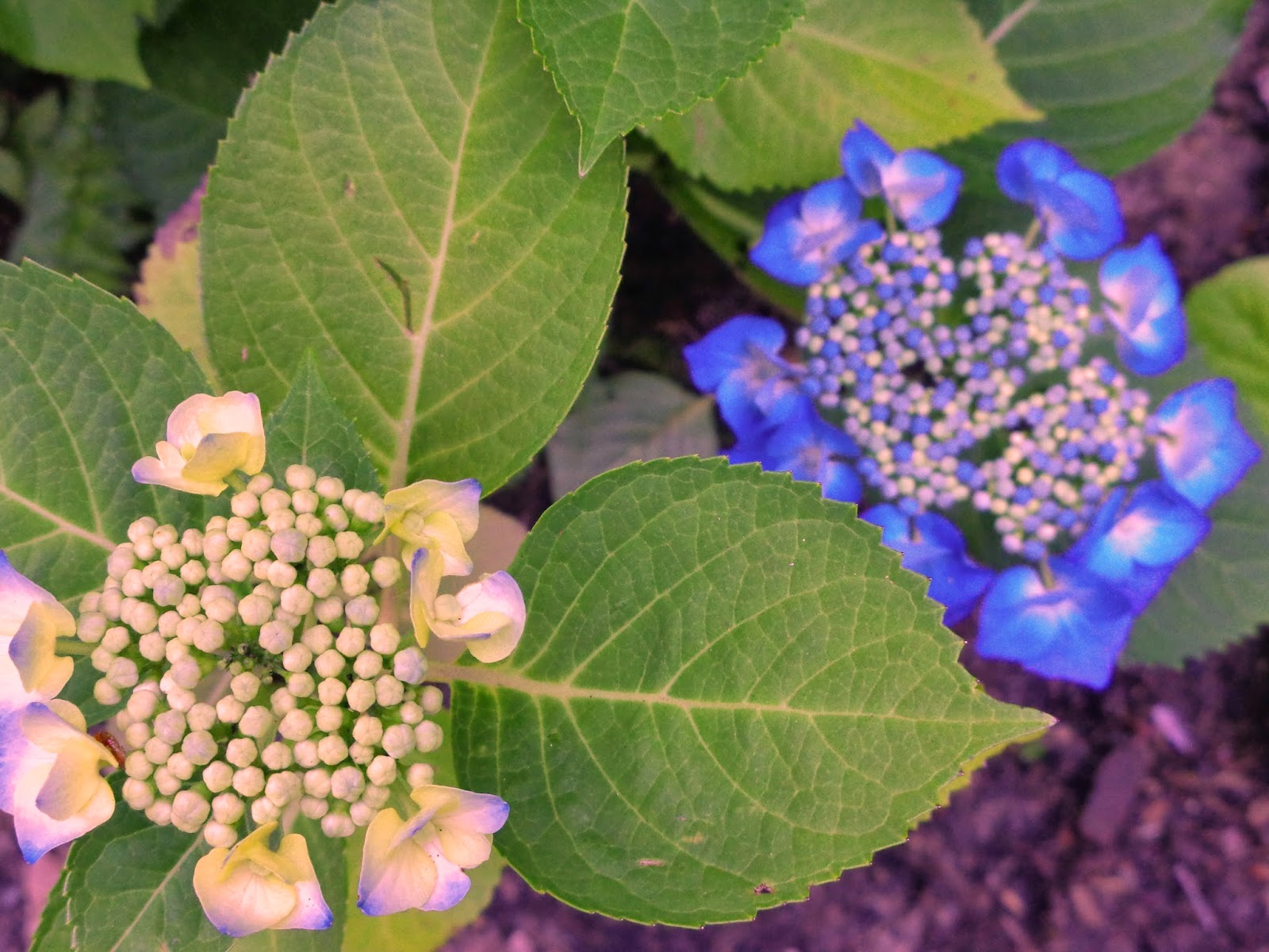 Hydrangeas were just starting to form buds, Twist-'n-Shout was already in full bloom. It blooms on new wood, but it blooms much earlier and more prolifically on old wood. It is a stunner with bright blue, eight-inch wide lacecap blooms. Last year I was given a ‘Lemon Daddy’; its foliage is a lovely chartreuse. It has a few blooms forming and I suspect the mophead will be a light pink.‘Wayne’s White’ is one of my favorites. It’s a lacecap, but it seems to have fewer fertile flowers than other lacecaps, either that or they are just covered by the massive, showy, sterile flowers that open with a tinge of pink and age to pure white.